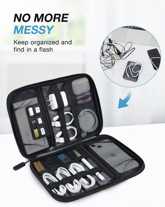 Large Electronics Travel Organizer Case, Tech Accessories Cord Storage Bag for Phone, Power Bank, SD Card, Cables, Black